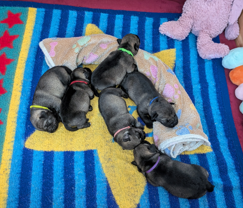 Nach einer langen Nacht vom 21. auf den 22.05. mit viel Hecheln, Scharren und Unruhe hat Arabella am Morgen des 22.05. kurz vor 7 Uhr ihren ersten Welpen geboren. In ihrer ersten Lebenswoche haben sich die 6 kleinen Schnauzer von den Strapazen der Geburt erholt und schon einiges an Gewicht zugenommen. Die Zuchtwartin Jelena war zur Wurfbesichtigung hier und hat die Kleinen in Augenschein genommen.
