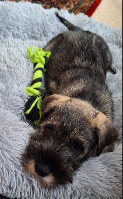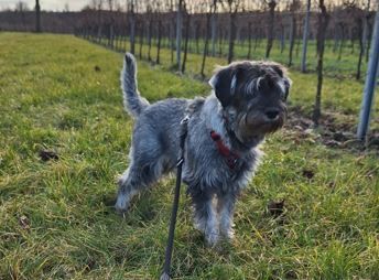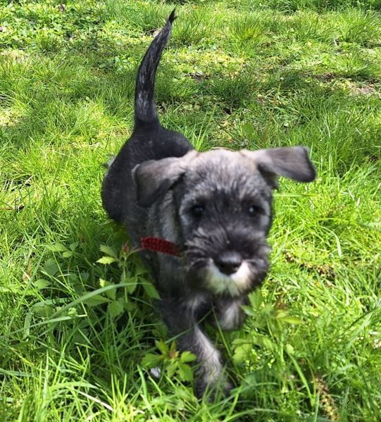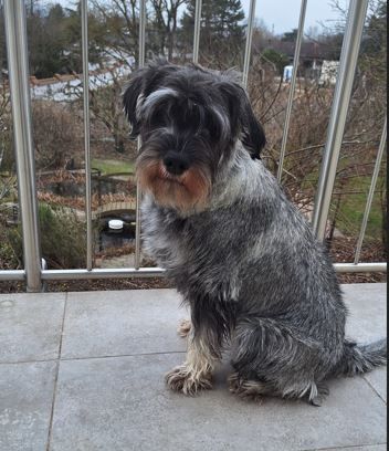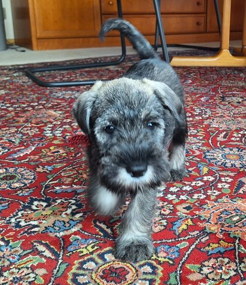 Frieda wohnt in Landau in der Pfalz. Sie ist eine selbstbewusste und fröhliche junge Dame. Sie liebt wilde Schnauzer-Spiele und schläft am liebsten auf dem Rücken.