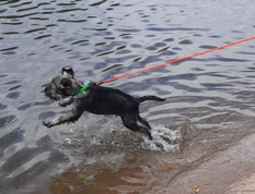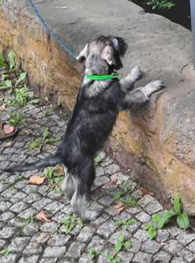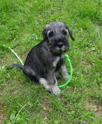 Giso, Herr grün, ist ein unternehmungslustiger und aktiver Rüde. Er ist nach Halle an der Saale gezogen, wo er seine neue Familie ordentlich auf Trapp hält.